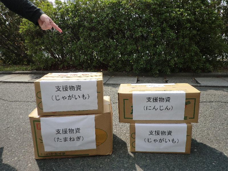 熊本と山形から写真が届きました。ご覧ください。熊本からは野菜を、山形からは服を送っていただいています。もうそろそろ現地に着いているはずです。