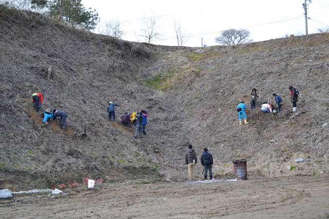 (ボランティアの皆さんと桜を植えていく)