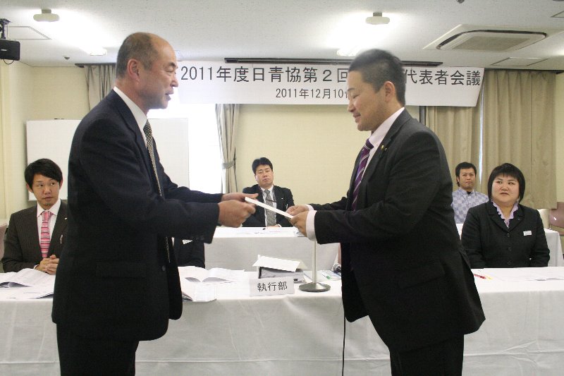 12月10日から11日にかけて、東京・日本青年館で第2回全国代表者会議が開催され、この場で先だって行われたピアノデュオ・クトロヴァッツ兄弟による復興支援コンサートの義援金が、被災三県団の代表者に贈呈されました。
