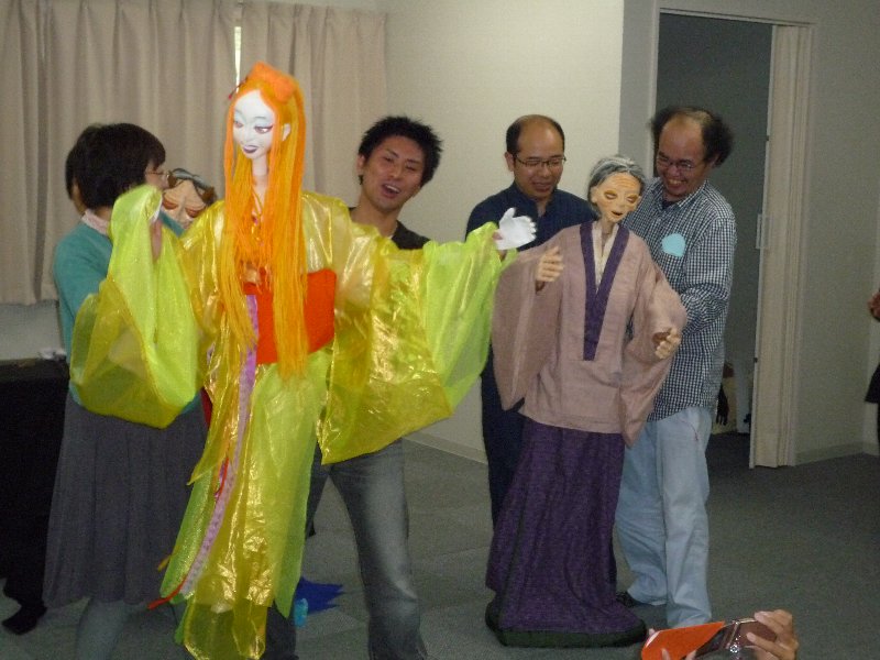 10月23日(日)、大槌町の仮設住宅内集会所にて、大槌町青年団体連絡協議会と千葉県の人形劇団「旋風鬼」による、人形劇講演が行われました。この企画は、大槌町青年団体連絡協議会が、自分たちが取り組んでいる人形劇を使って、仮設住宅で暮らす人々に少しでも楽しい時間を届けたいとの思いで取組んだものです。当日は、仮設住宅に暮らす、お年寄りや小さな子どもに加え、盛岡や陸前高田から青年団関係者など20名ほどが集まり、両団体の人形劇を楽しみました。