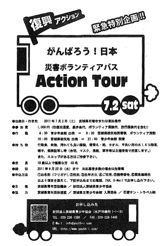 茨城県団の井上さんから、7月2日に行われた「震災ボランティアバスAction tour」について報告が寄せられました。