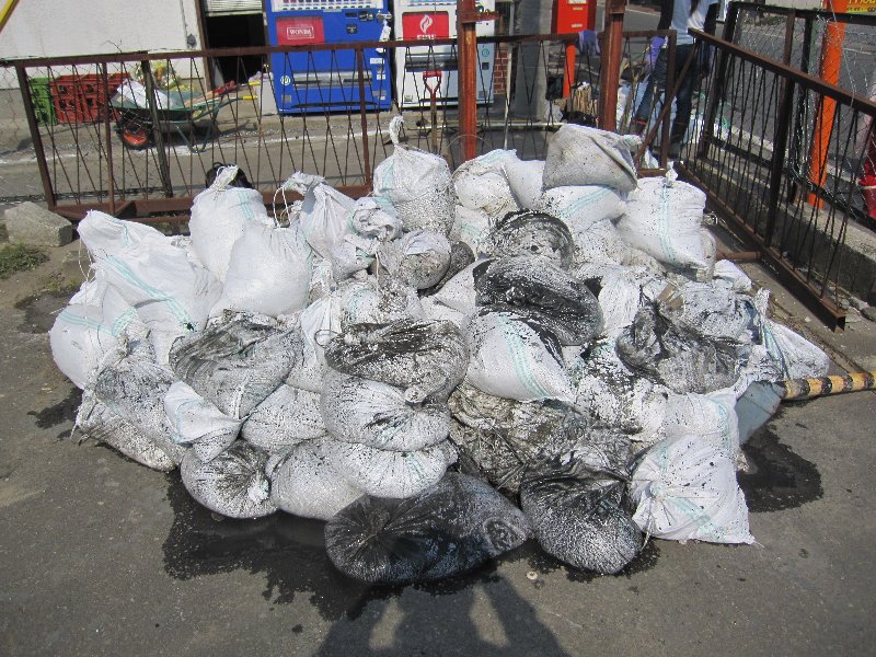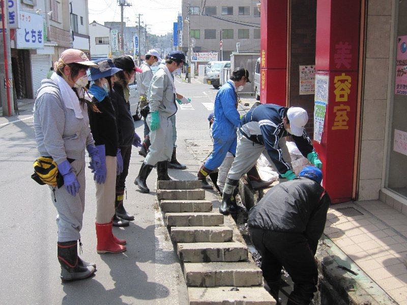 訪問地は宮城県石巻市。作業内容は道路の側溝にたまっている泥のかき出しでした。側溝のふたをはずして泥をかき出し、土嚢袋に詰めて集積所に運ぶ、というのが一連の流れだったようですが、泥が重くてなかなか作業が進まず、土嚢袋に入れるのも一苦労。参加された40名の方々は翌日体が痛かったそうですが、「行って良かった」との感想が聞かれたとのことでした。